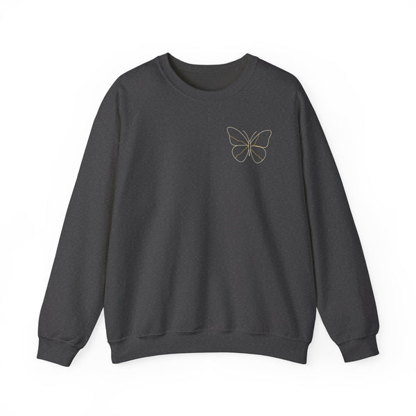 The Resilience & Healing Crewneck embodies the beauty of transformation and the power of embracing your journey — cracks and all. Inspired by the Japanese art of kintsugi, golden lines trace the butterfly design as a reminder that healing makes you more whole, not less.